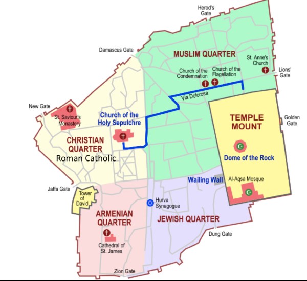 The Old city is split between the enemies of God in the northern sector, and the People of Israel in the southern sector. Three Roman Catholic Churches and most of Via Dolorosa is located inside the Muslim Sector. Interesting. They can walk together up to the Dome of the Rock, built by the Muslims, during the age the Pope ruled in Jerusalem (1099-1291 A.D) The Church of the East is basically populated by people from within the 10 lost tribes of Israel. They resided in ancient Persia, and eventually converted into the faith in a Jew, they called the Messiah. The Muslims and Catholic will hail the last and ultimate false “peacemaker” in their “Palestine”, their HQ located on the Temple Mount. You can walk up there with them, using the Via Dolorosa. Will you like to do that? Or will you stand united with the People of Israel, a small minority? 13 million Jews and 10 million Armenians worldwide. 1,6 billion Muslims and 1,3 billion Roman Catholics. And some few hundred million Christians, who do not really understand how the Wold has been divided.