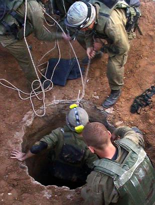 IDF soldiers discovering a smuggling tunnel next to the Rafa border crossing into Egypt