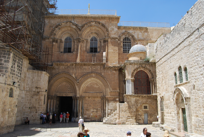 The main entrance to the Church of the Holy Sepulchre in Jerusalem.