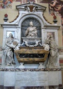 In 1737 they finally allowed his body to be buried in consecrated ground and he now lies in Florence’s Santa Croce church, opposite the tomb of Michelangelo