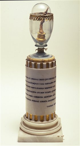 The remaining finger and the vertebrae have been conserved since 1737 in a mummified state in museums in Florence and Padua.