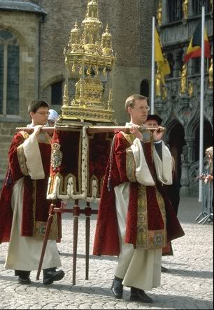 Catholics in Belgium carries the claimed original blood of Jesus on their shoulders.
