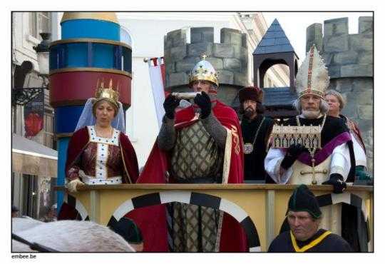 The Bishop leads the parade through the streets of Bruges in Belgium.
