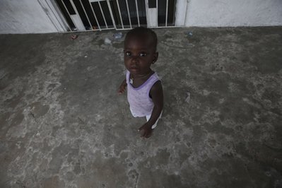 A child who fled with his mother following a deadly army attack on Ayakoromor village in Nigeria.