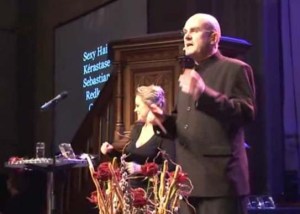 The toastmaster of the evening, was sacked Lutheran Priest Einar Gelius. He was distributing prices for best hair products and costumes.