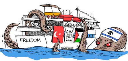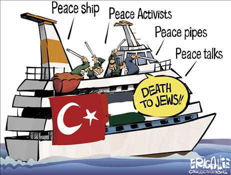 Islamic terrorists from Turkey and Syria are equally pirates when they form a “Gaza aid flotilla” and move into confrontation with the Israeli navy. Islam tries to use force to set the new naval borders abound Israel.