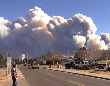 The fire on Los Alamos property has lead to evacuation. This is the view from the site.