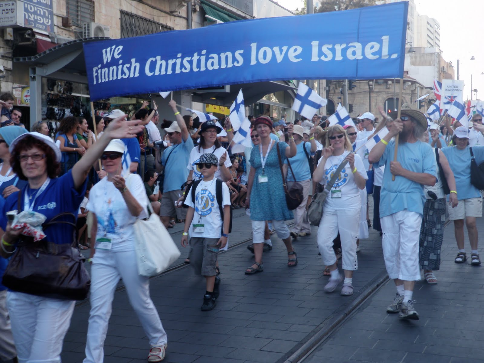 Saved gentile believers in Jesus display their love for Israel in the Jerusalem March.