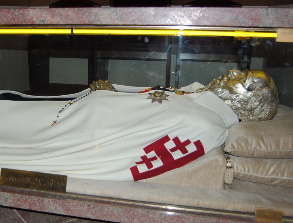 The occultist turned Templar Knight of the Roman Catholic Church, is kept for display in the Basilica of Our Lady of the Most Holy Rosary in Pompeii.