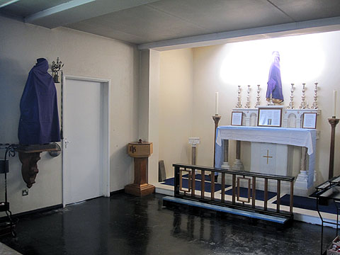 A hidden crucified "Jesus" on the altar of a Roman Catholic Church.