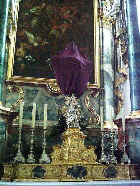 The crosses are veiled because Christ during this time no longer walked openly among the people, but hid himself. Hence in the papal chapel the veiling formerly took place at the words of the Gospel: “Jesus autem abscondebat se.” Another reason is added by Durandus, namely that Christ’s divinity was hidden when he arrived at the time of His suffering and death. The images of the saints also are covered because it would seem improper for the servants to appear when the Master himself is hidden