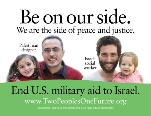 The posters will run in 18 subway stations in Manhattan, Brooklyn, Queens and the Bronx. They will feature images of Palestinians and Israelis with their children and the message “two people, one future.”