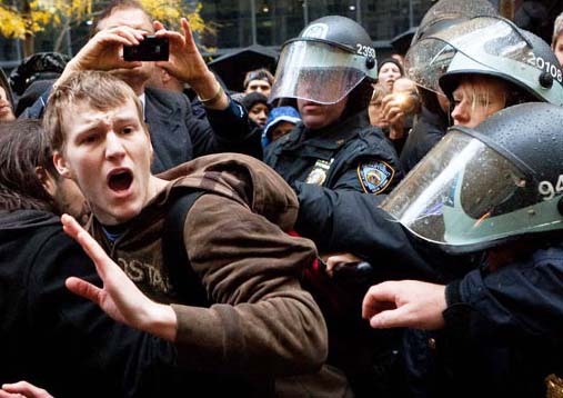 Some 250 people were arrested in New York alone, many of them as trouble flared near the stock exchange.