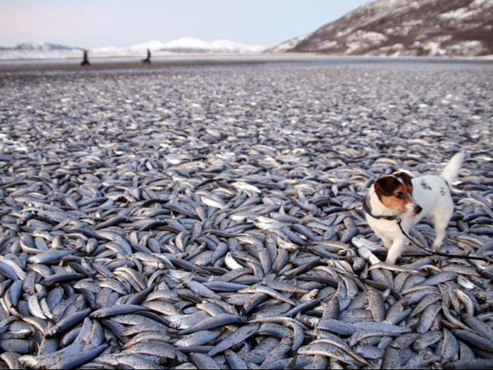This weekend, the citizens of the small village of Kvœrnes i Northern Norway witnessed a strange event. Around hundreds thousands of pelagic fish were washed onshore, and lied dead on the arctic beach. 20.000 kilos in all.