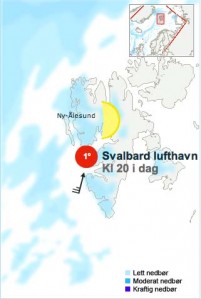 Yesterday evening, Monday at 8 PM, it was strong gale winds and +1 C at the airport on Svalbard