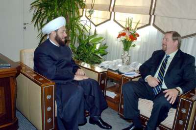 “Syria’s Grand Mufti Sheikh Badr al-Din Hassoun received the American Pastor in Damascus in which he referred to the importance of spreading culture of amity, peace and coexistence instead of the ‘clash of civilizations’.
