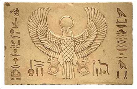 Horus as the Falcon god of Egypt, having the sun god as his head and Father.