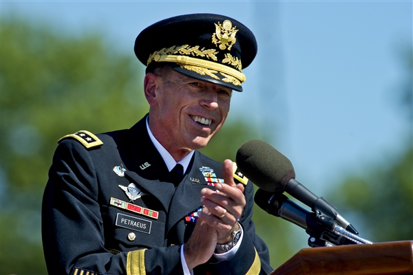 General Petreaus with the symbol of the sun god just above his forehead.