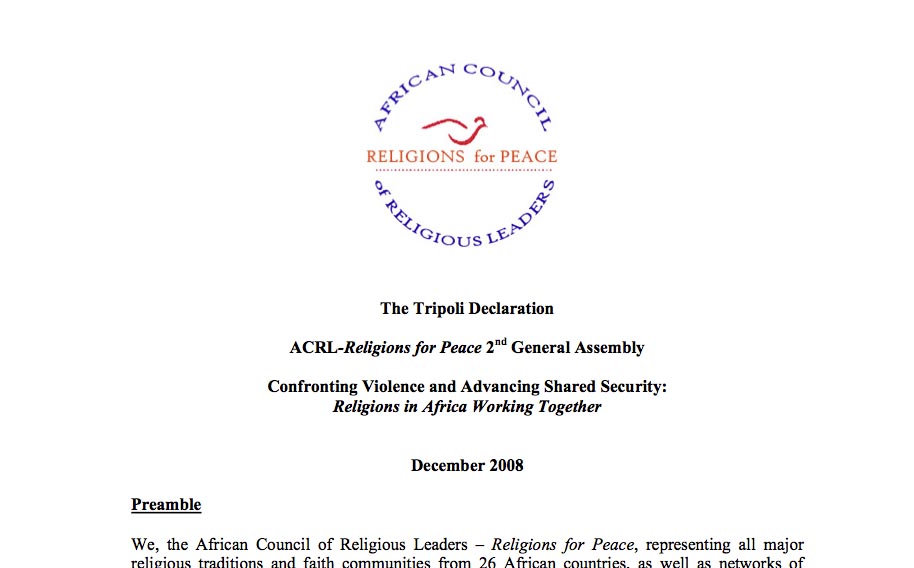 This European “Peace forum” has acknowledge the so-called Tripoli Declearation. This declaration is signed and promoted by The African Council of Religious Leaders, representing all major religious traditions and faith communities from 26 African countries