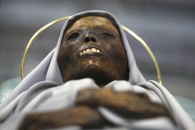 This is the skull of St. Rose, adored and venerated by the Roman Catholic Church.