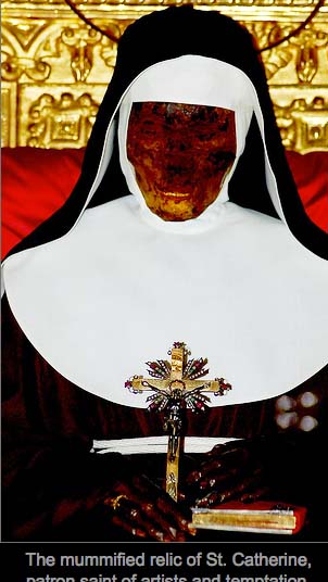 The most bizarre pictures you might ever see are those of St. Cathrine. She is dressed up like a nun, completely, even with the black head cover.