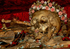 In regards to Catholic veneration of skull and bones, I suggest you rather go out and admire a nice sunset on the beach.