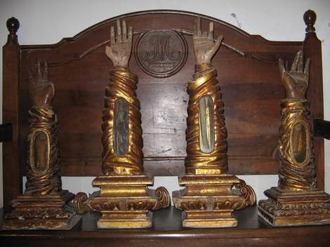 Four holy hands kept for display in Spain. Two of them are of saint Pedre.