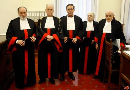 The lowest court: From left, Vatican court prosecutor Piero Antonio Bonnet, president Giuseppe Dalla Torre, prosecutors Paolo Papanti Pellettie.
