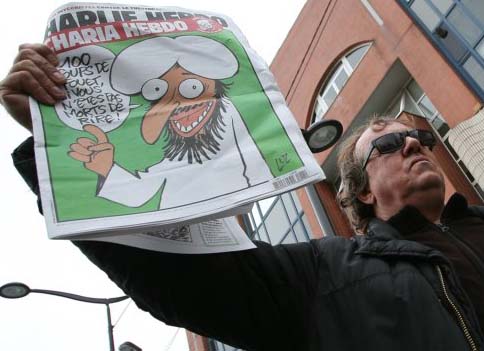 In solidarity with the magazine who have published the cartoons of Muhammad, we follow suit. This is a matter of principles.