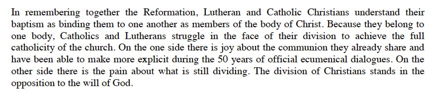 This is written in an ecumenical document. “Lutheran-Roman Catholic Commission Urges Celebration of Fruits of Dialogue in 2017”