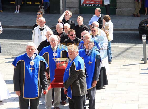 Mind you, this are the bones of an Old Testament Saint. Now the dead in Christ are only dead corporeally. They live in Christ, and have communion with His Church in the One Spirit of Christ. Christ has overcome death. Therefore, though the body of this Irish Saint has died, his younger brothers in the church have found it fitting to show him reverence for his service to the Lord, and to honor him in the name of Christ – and in so doing give reverence for Christ who was the cause of this man’s holiness. Indeed, his prayers are more efficacious now that he is before the throne of Christ on High then they were when on earth. So yes, we will ask him (pray him) to pray to the Lord on our behalf, for “The prayer of a righteous man is powerful and effective” (James 5:16). How much more a righteous man who is worshiping Christ face to face with Him?