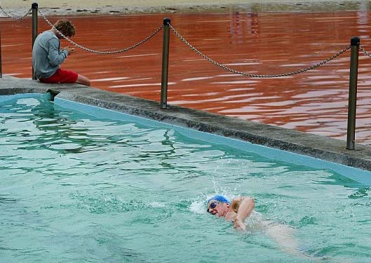 But despite the warnings a number of intrepid beachgoers were seen venturing into the water and swimming through the red surface, Ten News Sydney reported.