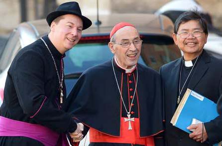 German born Ralph Napierski was pictured with senior clerics as they arrived for the start of the College of Cardinals meeting – which Britain’s most senior Roman Catholic Cardinal Cormac Murphy O’Connor was also attending.