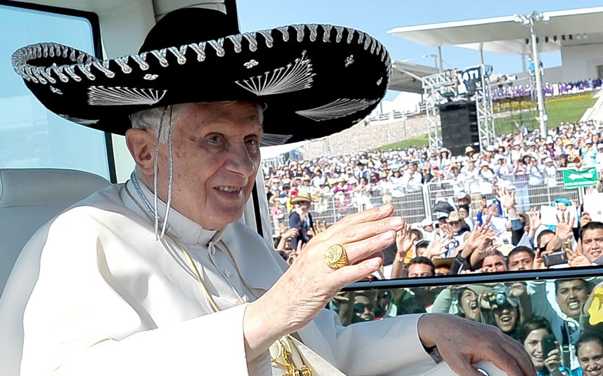 The Pope ready for a Mexican party.