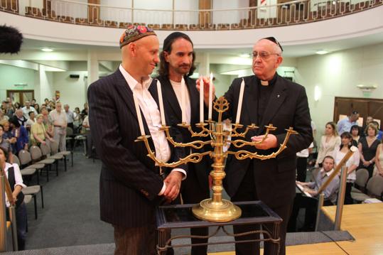 Dec. 12, 2012: Pope Francis during Hanukkah celebrations in Buenos Aires. Left, Rabbi Alejandro Avruj.