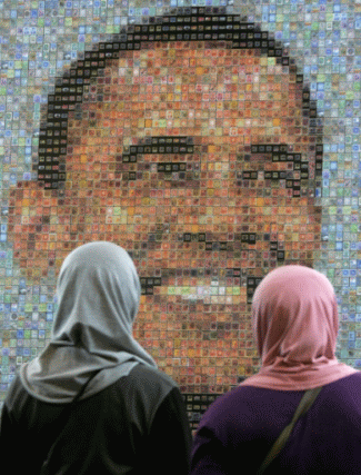 Mosaic of Obama in the city of Jakarta, in the Islamic nation of Indonesia,. This photo is taken on 25th of October 2008.