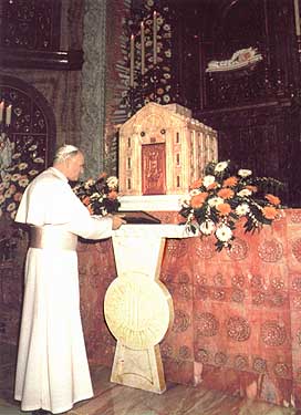 Pope John Paul II pray at the shrine of Maria Bambina in Milan.