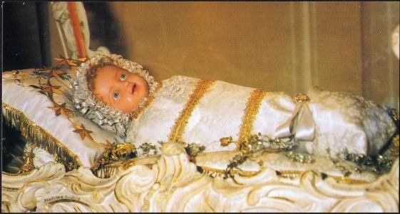 To make this issue a matter of complete confusion. Maria Bambino can be found in many shrine around the World. And while Maria Bambina has blue eyes in Italy, she is a black eyed baby girl in Mexico.