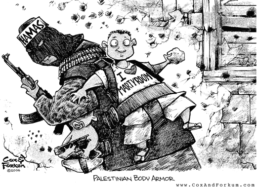 Fascinating cartoon. Except of course the IDF routinely uses Palestinian children as human shields. Interesting that you should be pointing out what a disgusting practice this is. A bit like pointing out how disgusting it was for Nazis to ethnically cleanse eastern Europe and move an approved racial group into the seized lands. Or to point out that Nazi policies of racial superiority were bogus, barbaric and morally reprehensible.