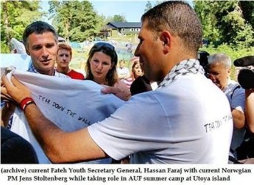 If Abbas is tried for war crimes in the Hague, so sould some of our prominent leaders. Like the new Secretary General of NATO, former Norwegian PM, Mr. Jens Stoltenberg. The new NATO-chief hosted leaders of the “Al Fatah Youth” on the terror-island of Utoya. Stoltenberg did grant the PLO around 50 million dollars of aid every year, and chose a Foreign Secretary who operated as an agent for the Hamas.