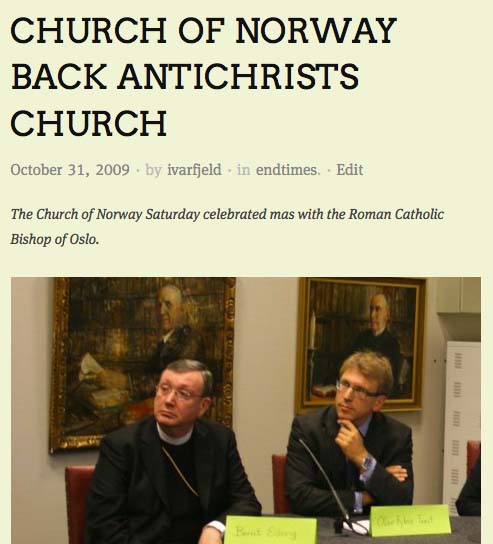 4. Sure the Lutheran state Church of Norway is apostate, but as I said the most dangerous movement in Norway is the cult of Pentecostalism! In all Europe,Norway is the cradle of Pentecostalism and its missionaries have spread this satanic cult not only in Europe but are doing so in Africa as well.