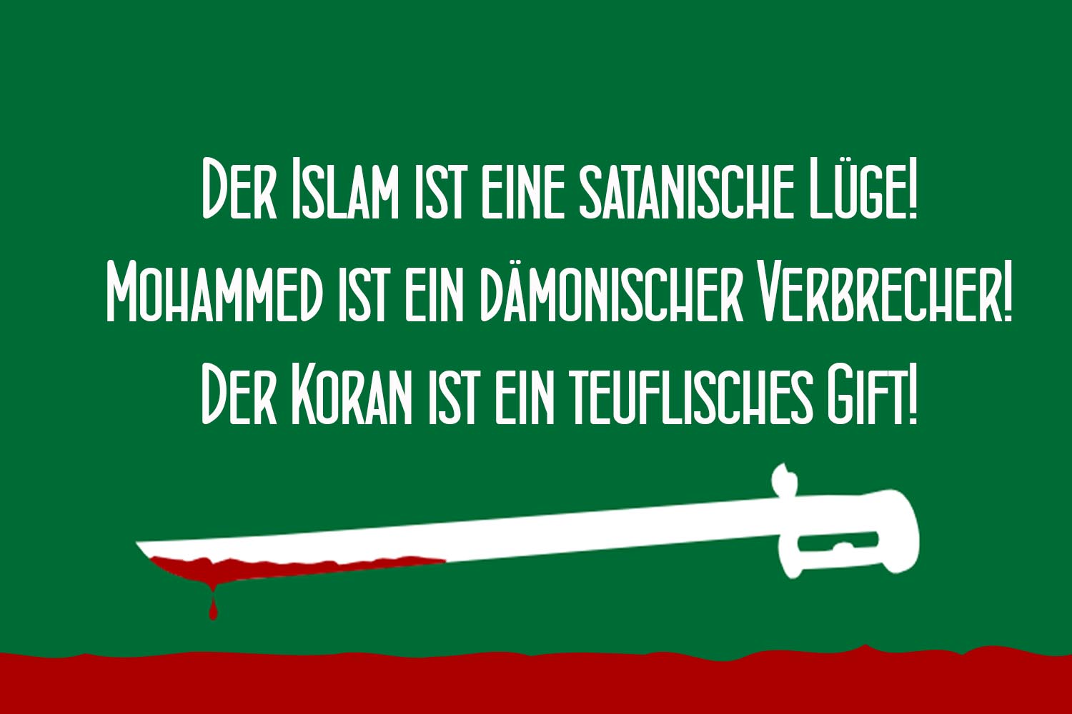 On this sticker, the truth about Islam is written in plain language. “Islam is a lie. Mohammed is a criminal. The Koran is poison”.