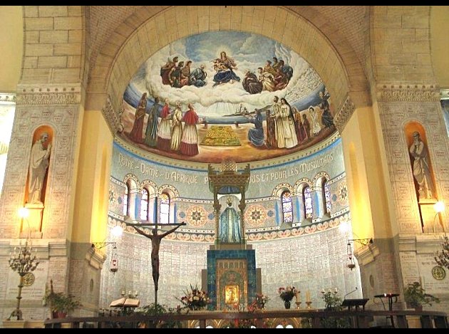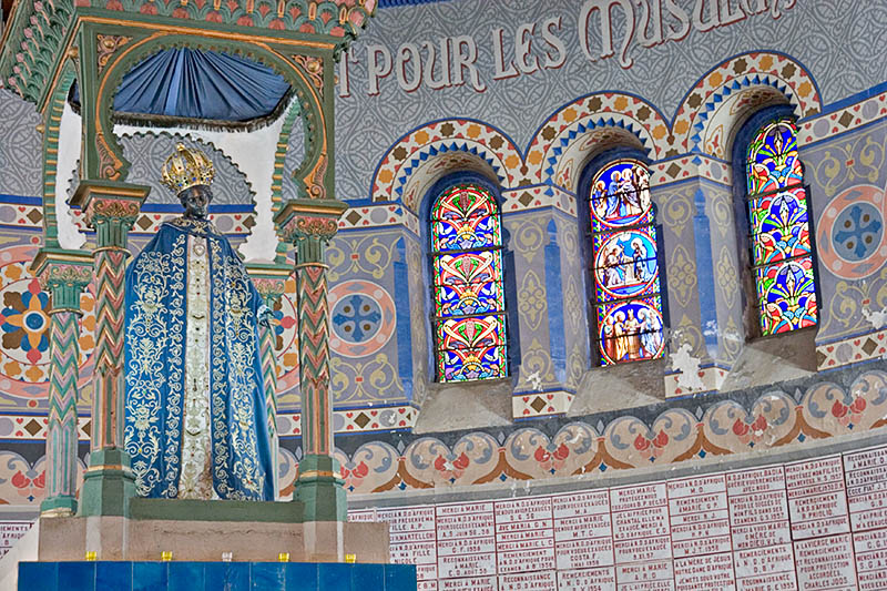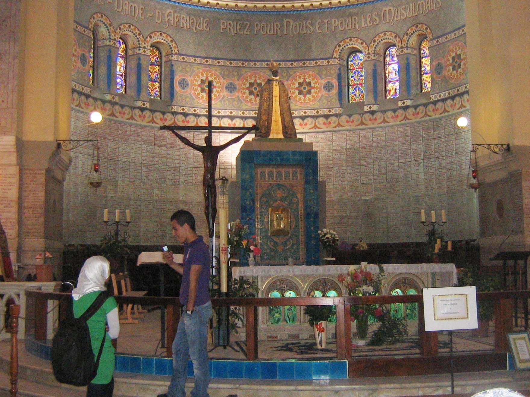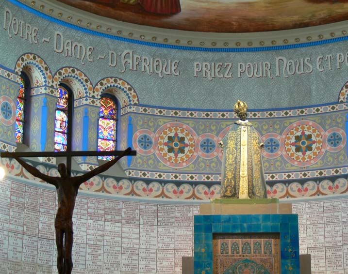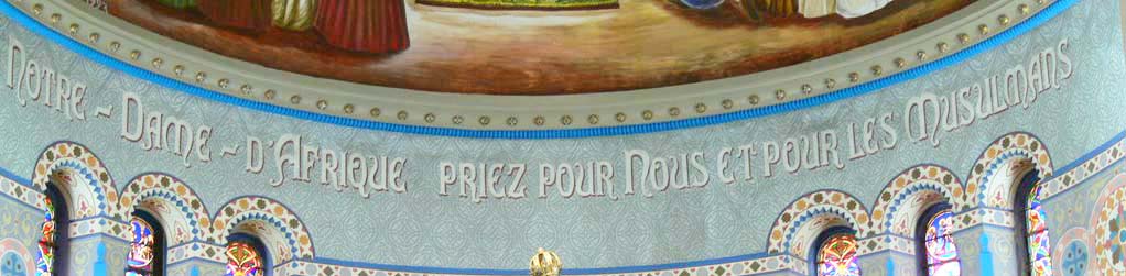 She reigns in the center of the room, and over her head it is written: “Notre-dame d’Afrique, Pray for us and for the Muslims”.