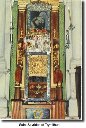 Saint Spyridon was present at the First Ecumenical Council in 325, which was attended by 317 God-bearing Fathers. The relics are taken in procession every Palm Sunday and on other special occasions, for veneration by the faithful. All Philharmonics of Corfu, including the Philharmonic Society of Corfu take part in these ceremonial events. The relic of his right hand is now located in Rome.