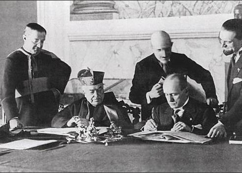 February 11, 1929. Facist Benito Mussolini gifts the Vatican to Pope Pius IX., as a part of th Lateran accord.