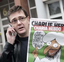 Chief  Editor Stephane Charbonnier was slaughtered by some sons of Muhammad.