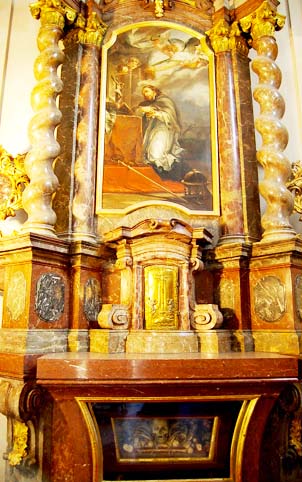 The relicts of the saint is kept in a sarcofag, looking like the arc of the covenant. The golden lampstands have also been copyied from Judaism.