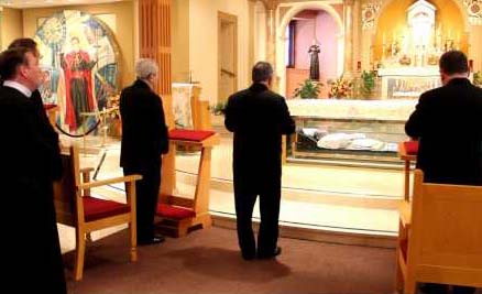 Catholic priests in the US conduct a mass with a corpse resting inside the altar.