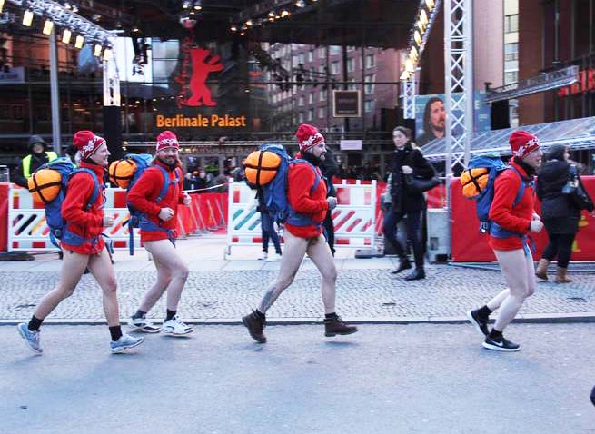 Some called the Norwegians for “idiots”, others shook their heads, but most of the area at Potsdamer Platz and cinemas Cinemaxx and Berlinale Palast laughed heartily, and many came with cheerful shouts of the five runners.