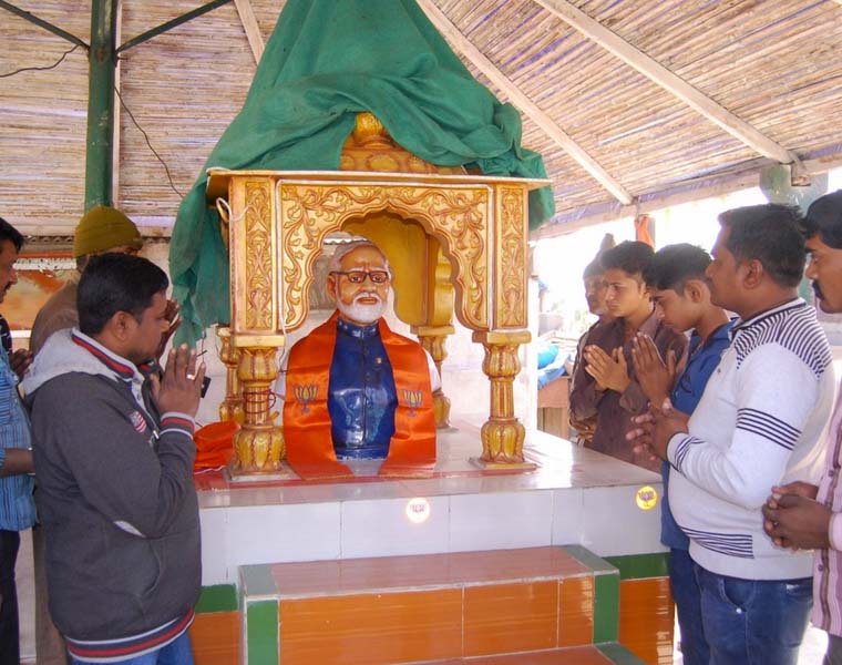 Hundreds of Narendra Modi’s followers in the western city of Rajkot donated funds for a temple that features a seated statue of him and is topped out with a wind gauge shaped like a lotus, the symbol of his Bharatiya Janata party.